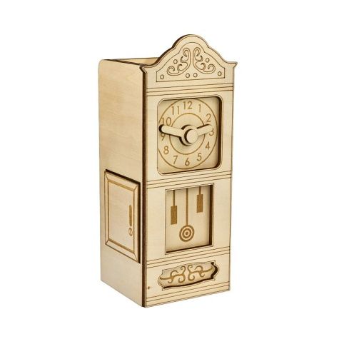 Dřevěný hlavolamový box ve tvaru stojacích hodin se skrytou přihrádkou, určený k ukrytí drobných cenností. Vhodný pro experty. Materiál: dřevo Rozměry: 23,5 × 11,5 × 9,2 cm