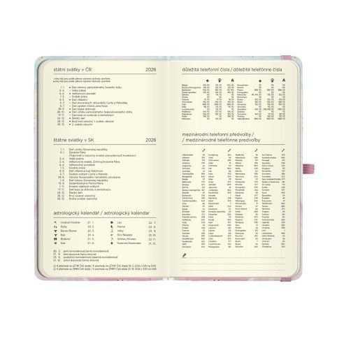 Oblíbená kapesní verze diářů je tu spolu s praktickým zavíráním na gumičku. Diářům na rok 2026 nechybí ani stuha jako záložka pro rychlou orientaci v diáři a poutko na propisku či tužku. Rozměry: 9 cm × 15,3 cm × 1,1 cm