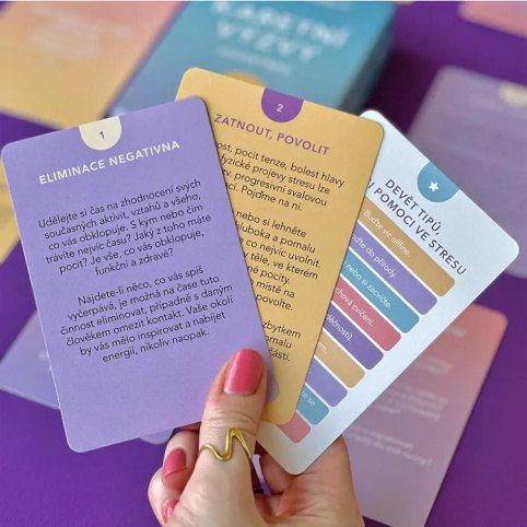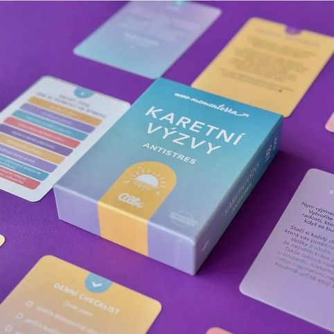 Balíček obsahuje 40 antistresových výzev rozdělených do 2 kategorií – pomoc ve stresu a prevence stresu. Hra Karetní výzvy - Antistres obsahuje: 40 karet antistresových výzev, 2 úvodní karty k akutnímu stresu a k prevenci, 3 edukační karty pro každodenní použití, 1 pravidla pro plnění výzev, 1 kartu s otázkami k zamyšlení, 1 kartu na odškrtávání výzev, 1 kartu s tematickým citátem, 1 kartu s tematickou mantrou.