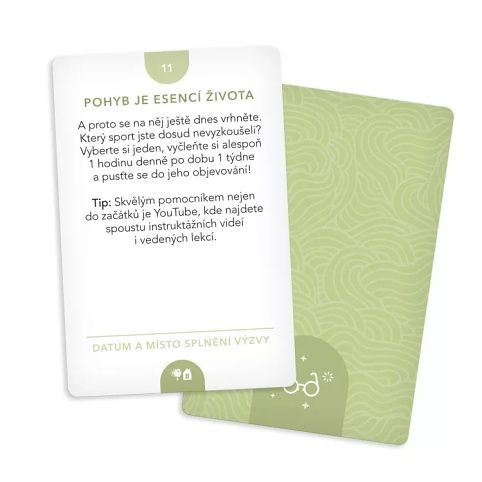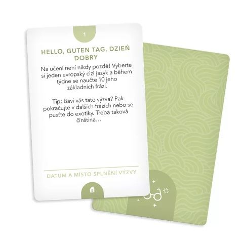 Máte aktivní (pra)rodiče nebo sami patříte mezi generaci, která se pomalu chystá na odchod do důchodu? Pak právě pro vás jsme připravili 40 unikátních výzev, jejichž cílem je pobavit a ukázat nové možnosti. Hra Karetní výzvy - Když věk je jen číslo obsahuje: 40 karet výzev, 5 karet bonusových výzev, 1 vzorovou kartu a pravidla pro plnění výzev, 1 kartu s otázkami k zamyšlení, 1 kartu na odškrtávání výzev, 1 kartu s tematickým citátem, 1 kartu s tematickou afirmací.