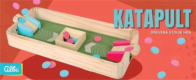 Dřevěné stolní hry od Albi je série 3 jednoduchých zábavných her pro 2 hráče. Ve hře Katapult vyhrajete, jakmile se vám podaří nastřílet všechny žetony do pole uprostřed hrací plochy. Hra Katapult obsahuje: hrací desku, 10 žetonů a dřevěný čtverec.