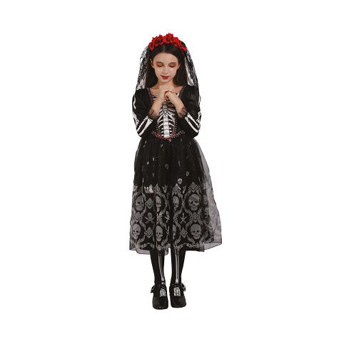 Dětský kostým šatů s kostrou ve velikosti 7-9 let je skvělou volbou na karneval, Halloween nebo při oslavě mexického svátku Day of the Dead. Velikosti: 7-9 let Materiál: 100% polyester Balení obsahuje: květovanou čelenku se závojem a šaty Nevhodné pro děti do 3 let.