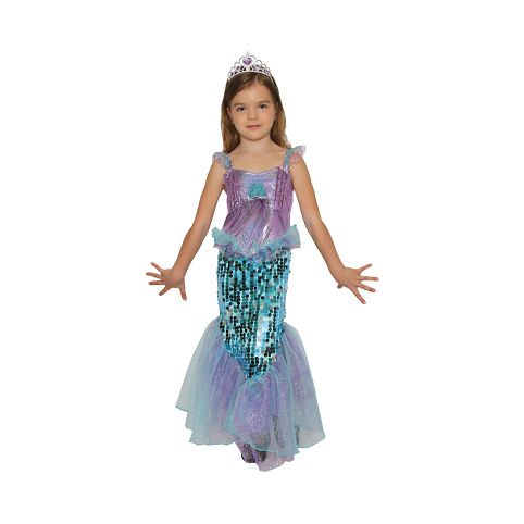 Dětský kostým Mořská panna s korunkou ve velikosti 4-6 let potěší všechny holčičky, které milují podmořský svět nebo pohádku o malé mořské víle Ariel. Velikosti: 4-6 let Materiál: 100% polyester Balení obsahuje: šaty s flitry a skládací korunku s drahokamy Nevhodné pro děti do 3 let.