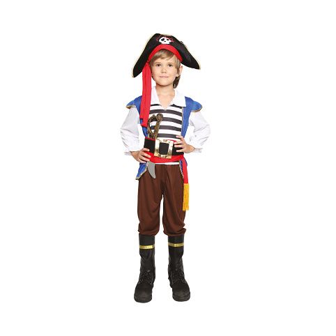 Klučičí pirátský kostým ve velikosti 4-6 let je vhodný na tematickou párty, karneval nebo jen tak na hraní. Velikosti: 4-6 let Materiál: 100% polyester Balení obsahuje: klobouk, top, kalhoty, dva opasky, návleky na boty a meč Nevhodné pro děti do 3 let.