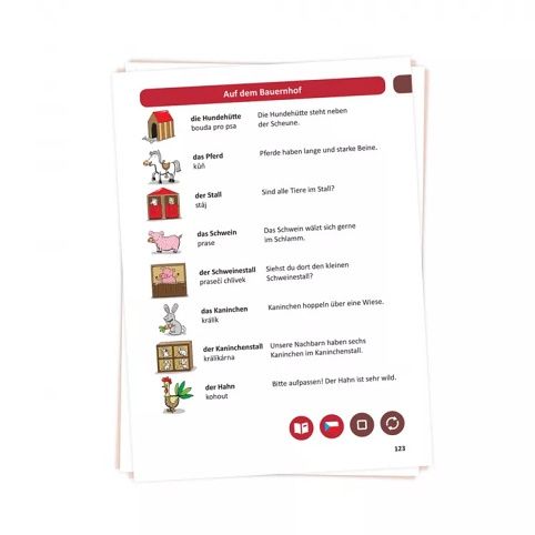 Kniha Německý obrázkový slovník z edice Kouzelné čtení je vhodná pro začátečníky i mírně pokročilé. Interaktivní mluvící kniha obsahuje základní slovíčka s obrázky a jednoduché věty.