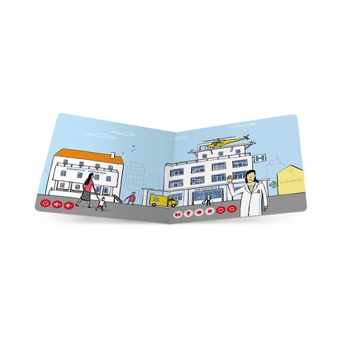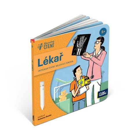 Interaktivní mluvící mini kniha Lékař seznámí děti od 5 let s povoláním lékaře. S Elektronickou Albi tužkou poznají, jak to vypadá u dětského lékaře. Dozví se, jak se léčí alergie, jak funguje rentgen či fonendoskop.