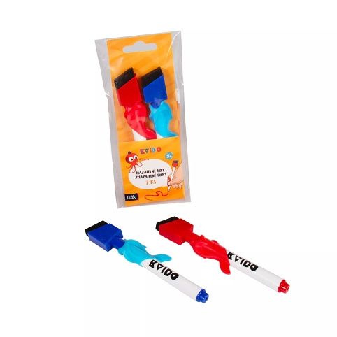 Náhradní mazatelné fixy ke hrám od Kvída - Závodu barev, Povídačkám, Hádankám na cesty, Roztančeným fixám, Hravému čtení. Gumový delfínek, navlečený na fixe, pomůže dětem se správným držením psacích potřeb. Balení obsahuje: 2 barevné fixy - červenou a modrou.