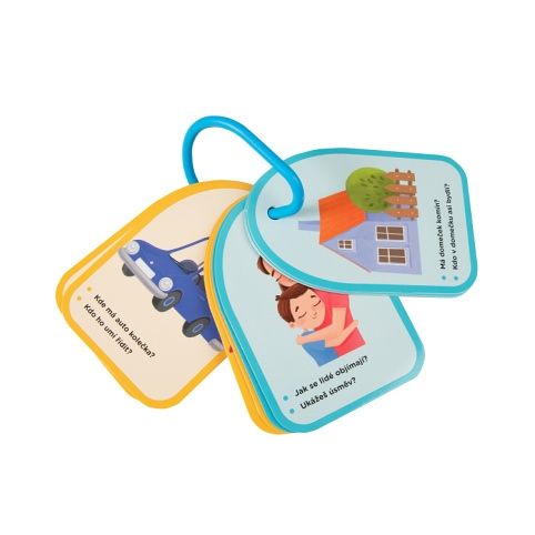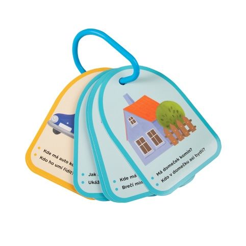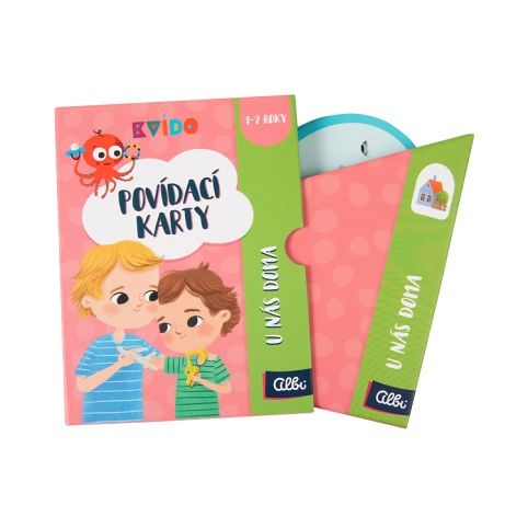 Povídací karty: U nás doma od Kvída jsou vhodným pomocníkem dětí i rodičů k rozvoji komunikačních a řečových dovedností. Povídací karty: U nás doma obsahují: 10 oboustranných ilustrovaných karet s 20 obrázky, pružný plastový klip k zavěšení karet na kočárek nebo postýlku.