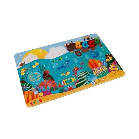 Originální dětská hra s pohyblivými prvky. Staňte se potápěči a vylovte poklad ze dna moře. Hra obsahuje: 4 dřevěné figurky potápěčů, figurku pirátů, dřevěnou hrací kostku,16 žetonů s poklady, kartonovou hrací desku a pravidla.