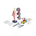 Přehledný průvodce anatomií lidského těla pro děti od 8 let. Sada obsahuje průhledný model lidského těla s vyndavacími orgány, kostmi, svaly, nervy a krevními cévami. Sada obsahuje: model lidského těla a stojánek, 9 měkkých orgánů, 4 krevní cévy a 1 nerv, 12 kostí a svalů, pinzetu, peán (kleště), model DNA, formu na odlití lidského mozku a kostí ruky, kádinku, akrylové barvy, štětec, brožuru plnou zajímavostí o anatomii lidského těla.