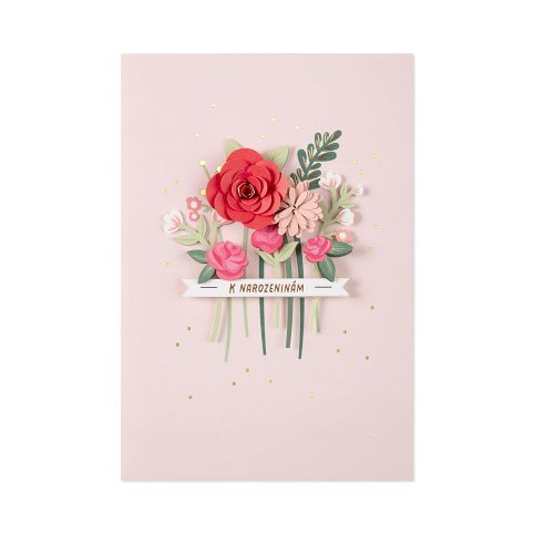 ALBI Luxusní narozeninové přání - Růžové květiny