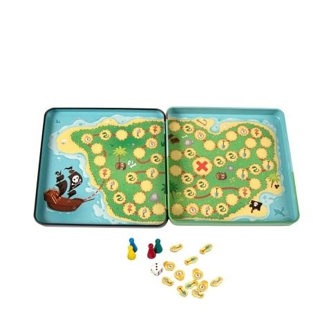 Magnetická hra na cesty pro 2 až 4 hráče, ve které je cílem dorazit k pokladu označenému písmenem X. Hráči se pohybují pomocí kostky a na křižovatkách si volí cestu tak, aby postupně nasbírali tři nezbytné předměty: kompas, lopatu a klíč. Předmět získáte pouze přesným zastavením na jeho políčku, zatímco pole s hadem vás vrátí o tři kroky zpět. Vítězí ten, kdo jako první s kompletní výbavou dorazí přesným hodem až do cíle. Hra obsahuje: magnetikcý herní plán, magnetické figurky, hrací kostka, magnetické žetony vybavení.