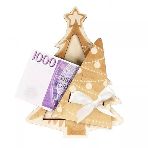Do vánoční dřevěné kapsy jednoduše vložíte bankovky a radost z originálního dárku je zaručena.