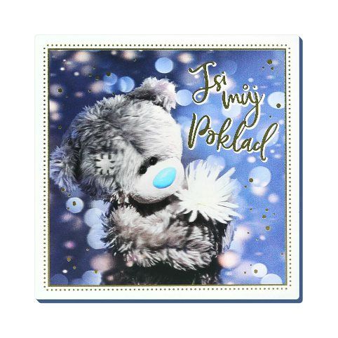 Mléčná čokoláda v dárkovém balení s 3D medvídky Me to You potěší jak na srdci tak i chuťové pohárky. Hmotnost: 90 g Rozměry: 10,2 cm × 10,2 cm × 1,5 cm.
