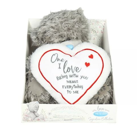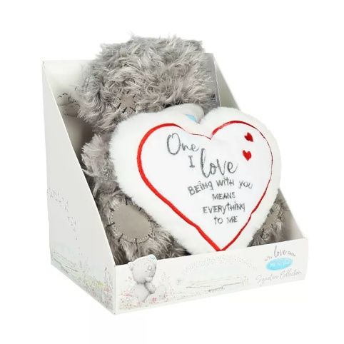 Úžasní šediví plyšáci Me to You s roztomilým modrým nosem a záplatou, čekají na nový domov. Výška medvídka: 17 cm. Celková výška produktu: 21 cm