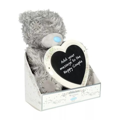 Úžasní šediví plyšáci Me to You s roztomilým modrým nosem a záplatou, čekají na nový domov. Výška medvídka: 17 cm. Celková výška produktu: 21 cm