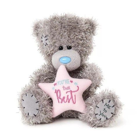Úžasní šediví plyšáci Me to You s roztomilým modrým nosem a záplatou, čekají na nový domov. Výška: 13 cm