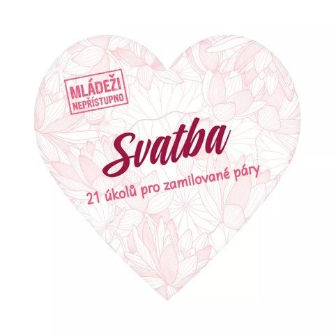 Erotická mini hra Laškování - Svatba obsahuje 21 úkolů pro zamilované páry v elegantní krabičce ve tvaru srdce.
