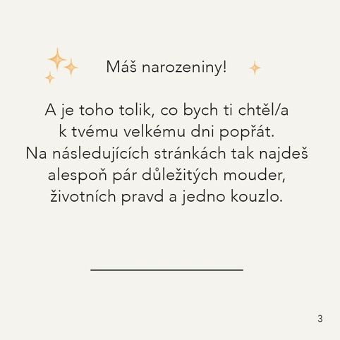 Malý dárek plný velké lásky pro všechny narozeninové oslavence. Počet stran: 56 Rozměry knihy: 10,4 × 10,4 cm