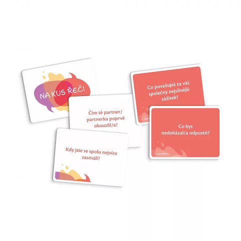 Na kus řeči jsou sady konverzačních karet, jejichž účelem je pomoci rozproudit či obohatit konverzaci o zajímavá témata, k nimž se třeba často obtížně hledají cesty.