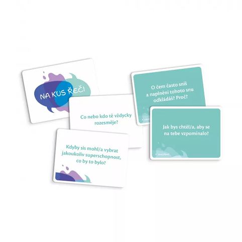Na kus řeči jsou sady konverzačních karet, jejichž účelem je pomoci rozproudit či obohatit konverzaci o zajímavá témata, k nimž se třeba často obtížně hledají cesty.