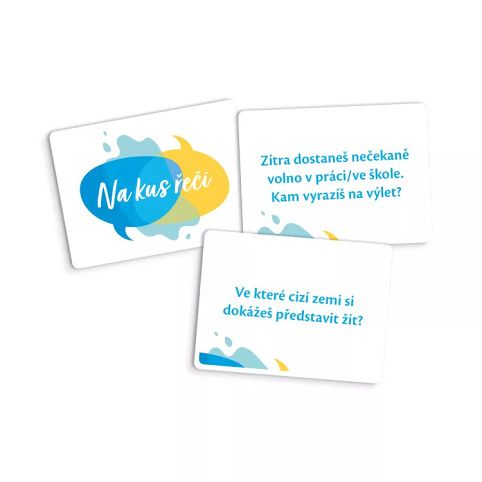 Na kus řeči jsou sady konverzačních karet, jejichž účelem je pomoci rozproudit či obohatit konverzaci o zajímavá témata, k nimž se třeba často obtížně hledají cesty.