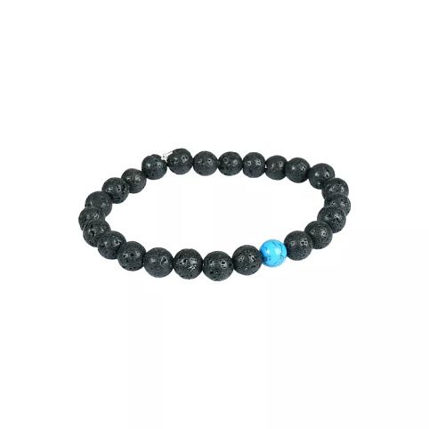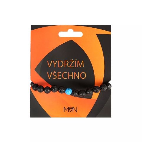 Náramek "Vydržím všechno" z lávových kamenů je doplněn kamínkem howlitu, který svému nositeli dodá klid a podpoří jeho kreativitu.