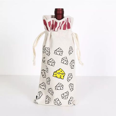 Obvyklým dárkem k narozeninám a jiným příležitostem je láhev kvalitního vína. Neobvyklým způsobem je ovšem darovat takovou láhev v látkové tašce s vtipným potiskem.