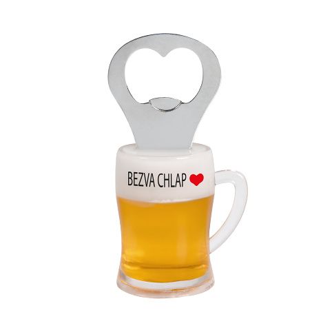 Magnetický otvírák s realistickým půllitrem piva místo rukojeti a vtipným vzkazem či věnováním.