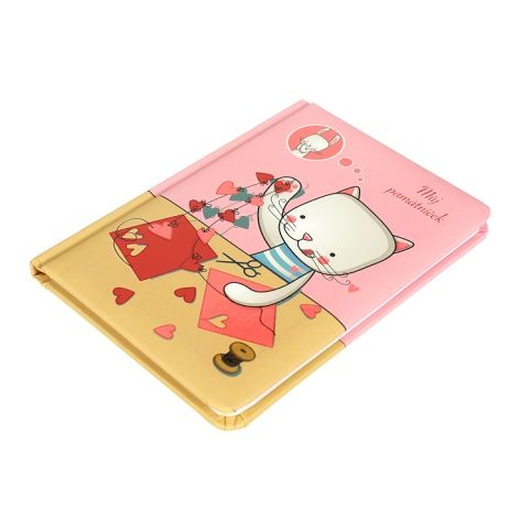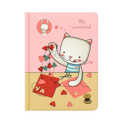 Památník s veselými motivy ve formátu A6 má pevné desky s měkkým povrchem a 60 prázdných listů. Rozměry: 11,5 × 15,5 × 1,5 cm