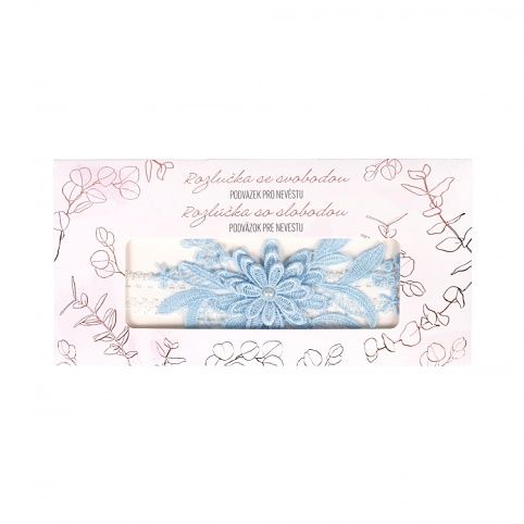 Podvazek pro nevěstu v modré barvě naplňuje tradici, při které by nevěsta měla mít ve svůj svatební den něco nového a modrého. Velikost: 50 - 70 cm