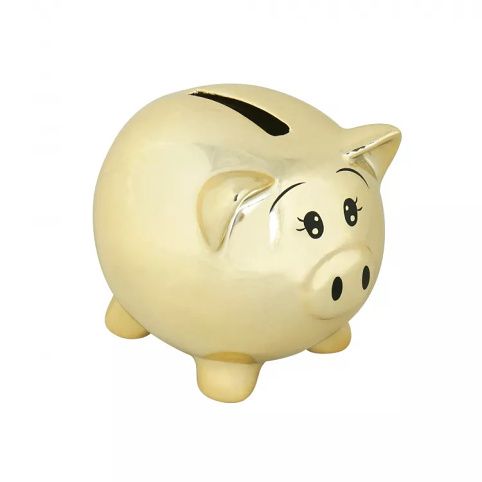 Spořte si s veselou pokladničkou ve tvaru prasátka. Výška prasátka: 5 cm Rozměry balení: 7,3 cm × 8,3 cm × 5,8 cm Materiál: keramika