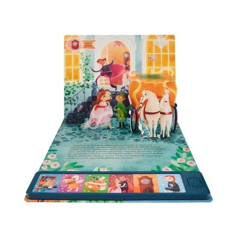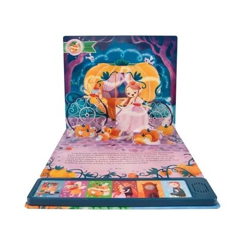 Dětská kniha o Popelce má 6 stran s 3D pop-up efekty a zvukový panel se 6 ikonami. Na každé stránce je vyobrazená ikona, která po stisknutí zahraje odpovídající zvuk. Vyměnitelné knoflíkové baterie (3 × 1,5V AG10/LR1130) jsou součástí balení. Počet stran: 6 Rozměry knihy: 27 × 26 cm Autor: Leanne Felton Ilustrace: Giulia Maidecchi ISBN: 978-80-7688-167-9