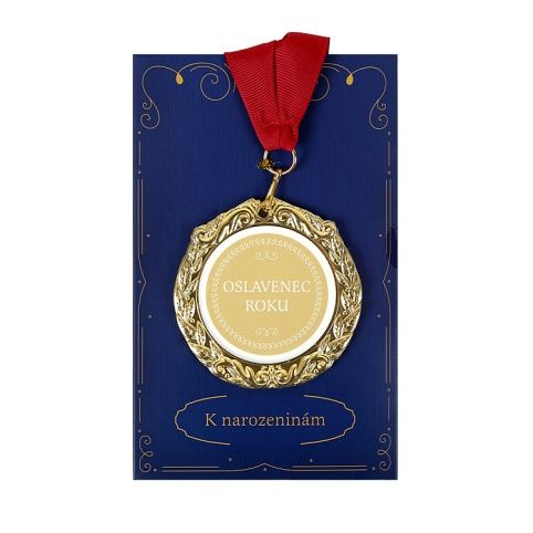 Netradiční přání v podobě medaile s textem ocení každý oslavenec. Uvnitř přání je prostor pro osobní věnování a medaile zavěšená na stuze, díky tomu ji může oslavenec hrdě nosit v průběhu celé oslavy (a klidně i poté). Průměr medaile je 7 cm. Materiál: Slitina zinku.