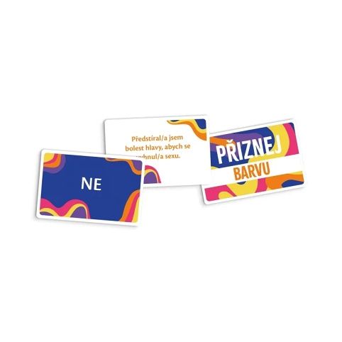 Začínající hráč vyloží kartu s výrokem a ostatní tajně odpoví „ano/ne“. Následně musí tipnout počet „ano“ a přiřadit odpovědi konkrétním lidem. Za správné tipy získává body. Konverzační karty Přiznej barvu jsou ideální pro 3-10 hráčů. Verze Pro kamarády 18+ má otevřenější a odvážnější otázky. Hra obsahuje: 89 karet s výroky, 10 kartiček ANO, 10 kartiček NE, 1 pravidla.