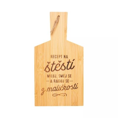 Prkénko je vyráběno z eco-friendly bambusového dřeva. Rozměry: 14 cm × 26,5 cm × 1 cm