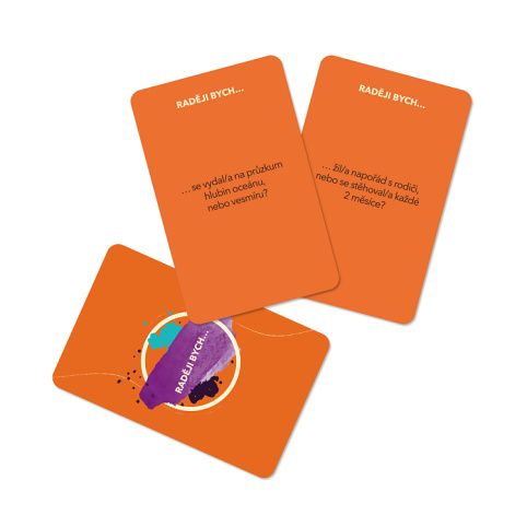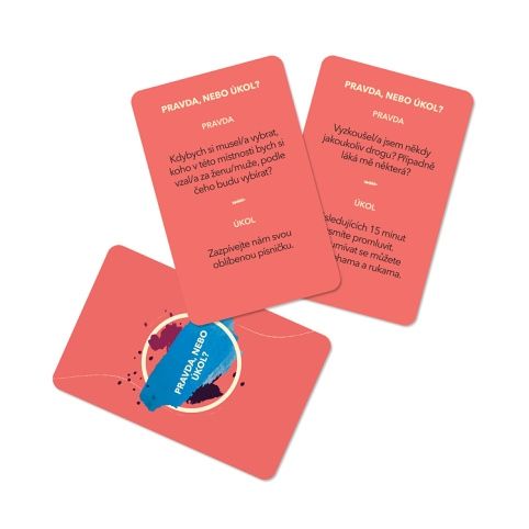 Věřte, že tyhle karty si jen tak neohrajete. Hra Prozraď mi - Na párty obsahuje 180 unikátních otázek rozdělených do 5 kategorií – Raději bych..., Do hloubky, Pravda, nebo úkol?, Kdo by spíš..., Žhavé. Součástí hry jsou také (sem tam i vyzývavé) úkoly! Hra Prozraď mi - Na párty obsahuje: 130 karet, 180 otázek či úkolů a pravidla.