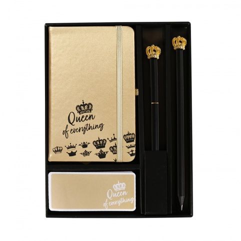 Obsahuje malý sešit, propisku, tužku a samolepící bloček