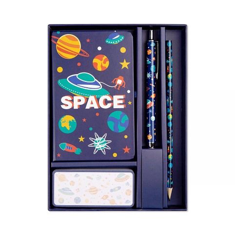 Vybavte se do kanceláře, nebo své děti do školy tematickým setem z kolekce To si piš. Psací set obsahuje: malý linkovaný sešit, propisku s modrým inkoustem, tužku a samolepící bloček Rozměry: Malý sešit - 9 cm × 14 cm, Samolepící bloček - 9 cm × 4 cm