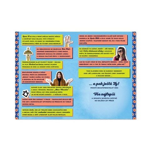 Na přání najdete zajímavé události, které se v daném roce staly, a také známé osobnosti, které se v témže roce narodily. Rozměry přáníčka: 13,5 cm × 19,5 cm