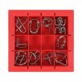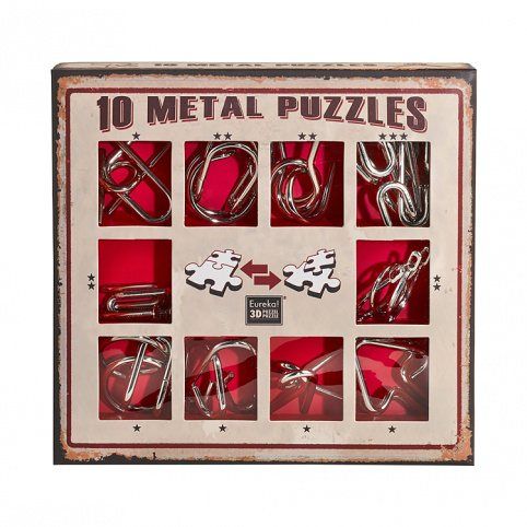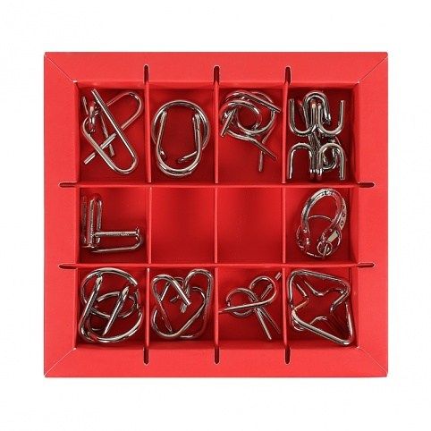 Sada 10 kovových hlavolamů, které potrápí vaši hlavu i ruce. Sada obsahuje kovové hlavolamy ve více obtížnostech, nudit se tedy nebudou zkušení ani hlavolamoví nováčci. Široká věková škála zajistí zábavu pro malé i velké. Červená sada obsahuje: 5 hlavolamů v obtížnosti 1, 4 hlavolamy v obtížnosti 2 a 1 hlavolam v obtížnosti 3. Obtížnost 1 - pro začátečníky od 7 do 77 let Obtížnost 2 - pro nadšence do hlavolamů od 12 do 77 let Obtížnost 3 - pro skutečné milovníky hlavolamů