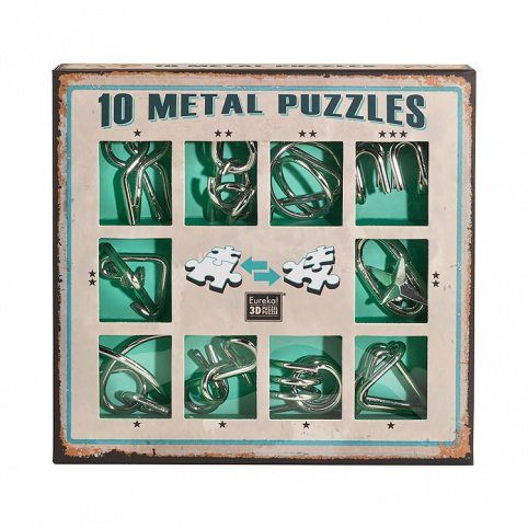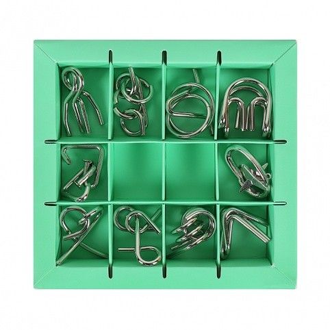 Sada 10 kovových hlavolamů, které potrápí vaši hlavu i ruce. Sada obsahuje kovové hlavolamy ve více obtížnostech, nudit se tedy nebudou zkušení ani hlavolamoví nováčci. Široká věková škála zajistí zábavu pro malé i velké. Zelená sada obsahuje: 5 hlavolamů v obtížnosti 1, 4 hlavolamy v obtížnosti 2 a 1 hlavolam v obtížnosti 3. Obtížnost 1 - pro začátečníky od 7 do 77 let Obtížnost 2 - pro nadšence do hlavolamů od 12 do 77 let Obtížnost 3 - pro skutečné milovníky hlavolamů