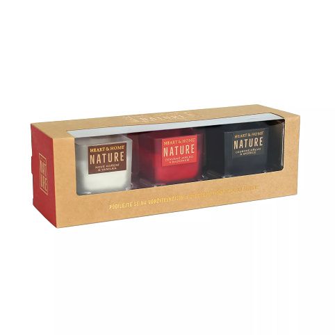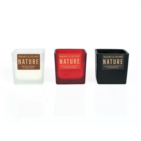 Sada 3 svíček Heart and Home Nature ze sójového vosku s vánočnmi vůněmi v dárkovém balení. Hmotnost: 3 × 45 g Doba hoření: až 12 hodin