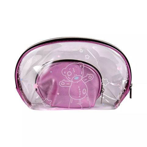 Praktickou sadu kosmetických tašek, která nabízí 2 velikosti pro různé potřeby, zdobí roztomilý medvídek Me to You. Rozměry větší tašky: 26 × 18 cm Rozměry menší tašky: 15,5 × 12,5 cm Materiál: PVC plast Tašky jsou omyvatelné vodou.