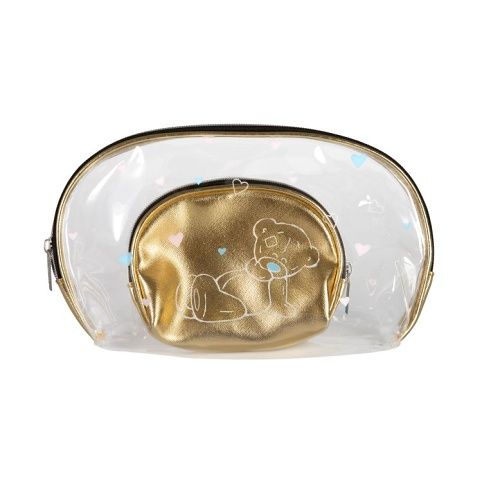 Praktickou sadu kosmetických tašek, která nabízí 2 velikosti pro různé potřeby, zdobí roztomilý medvídek Me to You. Rozměry větší tašky: 27 × 18 cm Rozměry menší tašky: 15,5 × 12,5 cm Materiál: PVC plast Tašky jsou omyvatelné vodou.