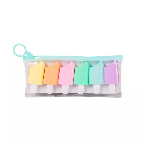 Sada obsahuje 6 kusů roztomilých zvýrazňovačů (žlutý, oranžový, růžový, zelený, modrý a fialový) ve tvaru nanuků.