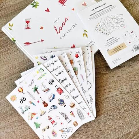 Samolepky pro zamilované vzpomínky se stanou vaším neodmyslitelným pomocníkem pro kreativní tvoření. Set Pro zamilované vzpomínky potěší každý pár vlastnící knihu Our Love Challenges.