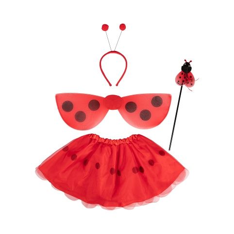 Set čtyř doplňků ve velikosti 4-6 let je ideální k dotvoření kostýmu berušky na tematickou párty, karneval nebo jen tak na hraní. Velikosti: 4-6 let Materiál: 100% polyester Balení obsahuje: čelenku, hůlku, křídla a sukni Nevhodné pro děti do 3 let.