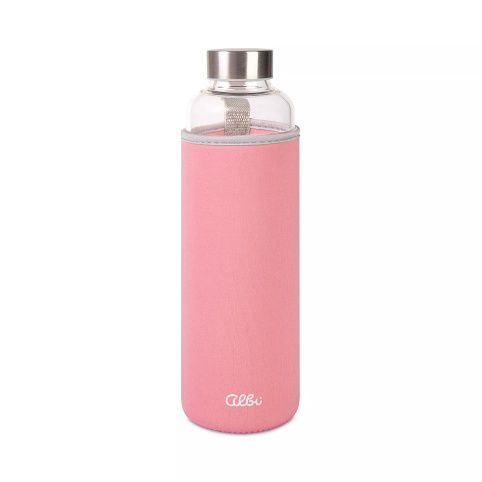 ALBI Skleněná láhev s růžovým obalem