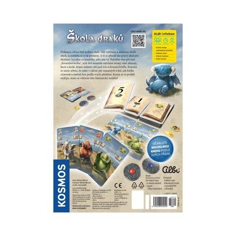 Rodinná desková hra pro děti od 8 let, ve které se hráči v roli čarodějů a čarodějek starají o mláďata draků. Pomocníkem je Kouzelná kniha, která určuje, jaké draky mohou hráči chránit. Cílem je co nejlépe se o draky postarat a stát se vítězem. Hra má jednoduchá pravidla, krásné ilustrace a atraktivní téma s draky, díky čemuž je ideální pro rodinné hraní. Hra obsahuje: 123 velkých karet, 45 úlomků amuletů, 15 perel, 3 štíty rozmanitosti, 10 krystalů, 9 zlatých vajec, 6 kouzelných truhel, pravidla, almanach.